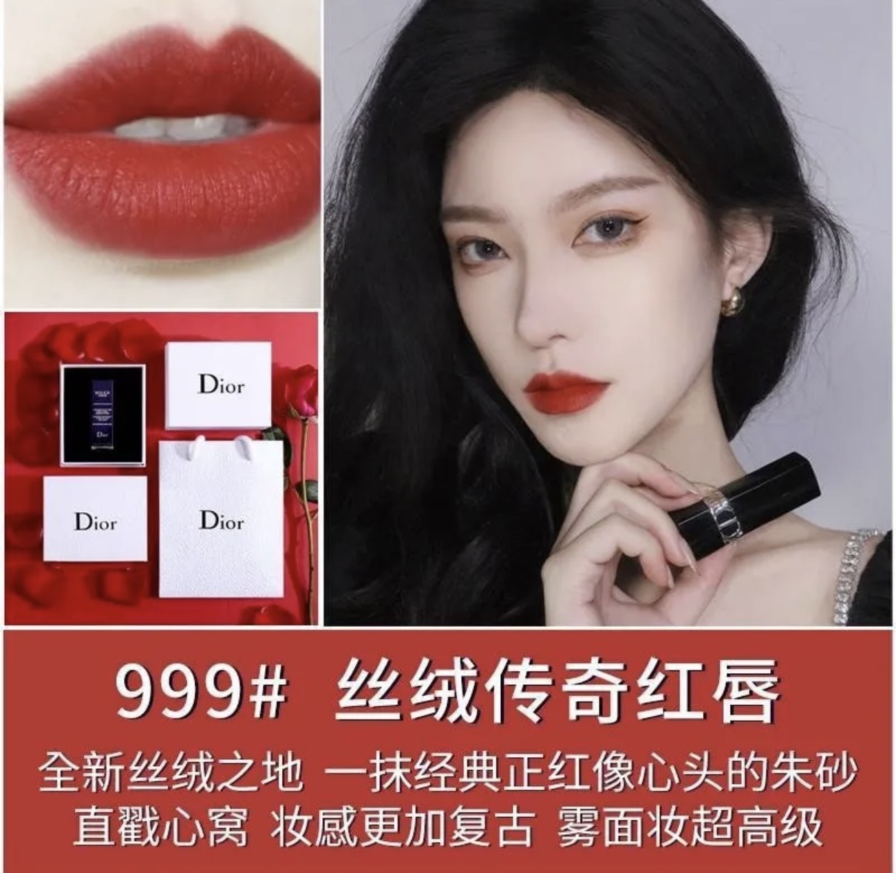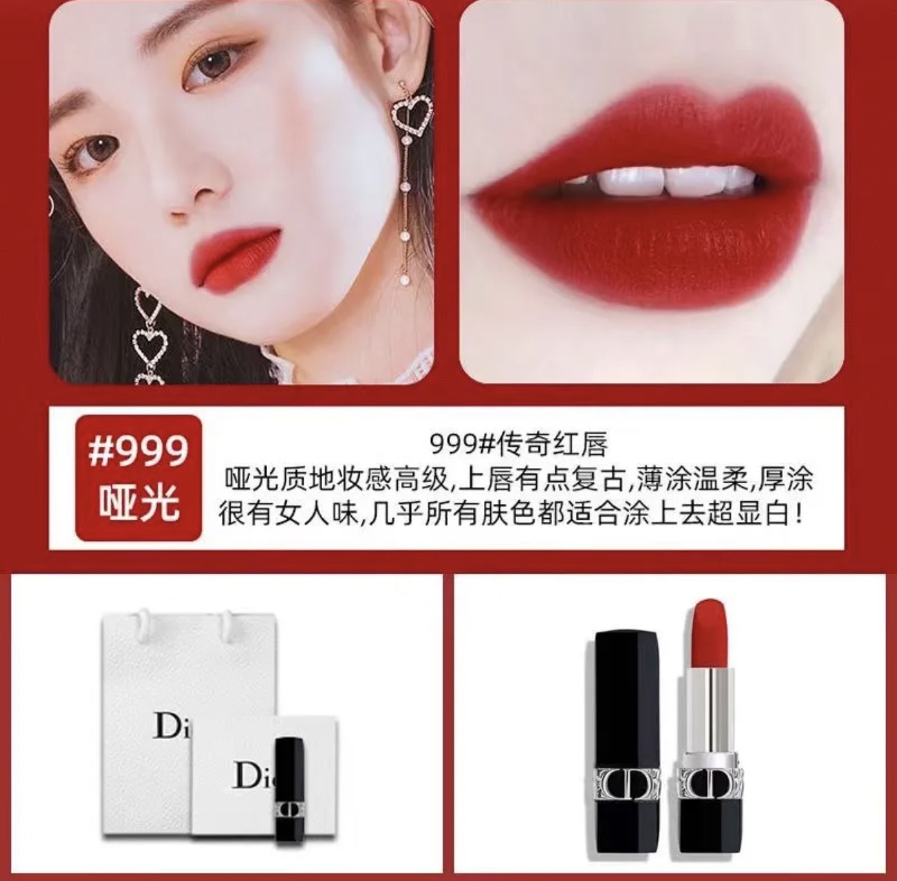 【520情人圣诞元旦生日礼物】迪奥Dior烈艳蓝金唇膏3.5g正装#999哑光